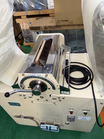 ※生地をコンベアに置き、上下ローラー間を通しながら左右に移動させて徐々にうすく仕上げていきます。